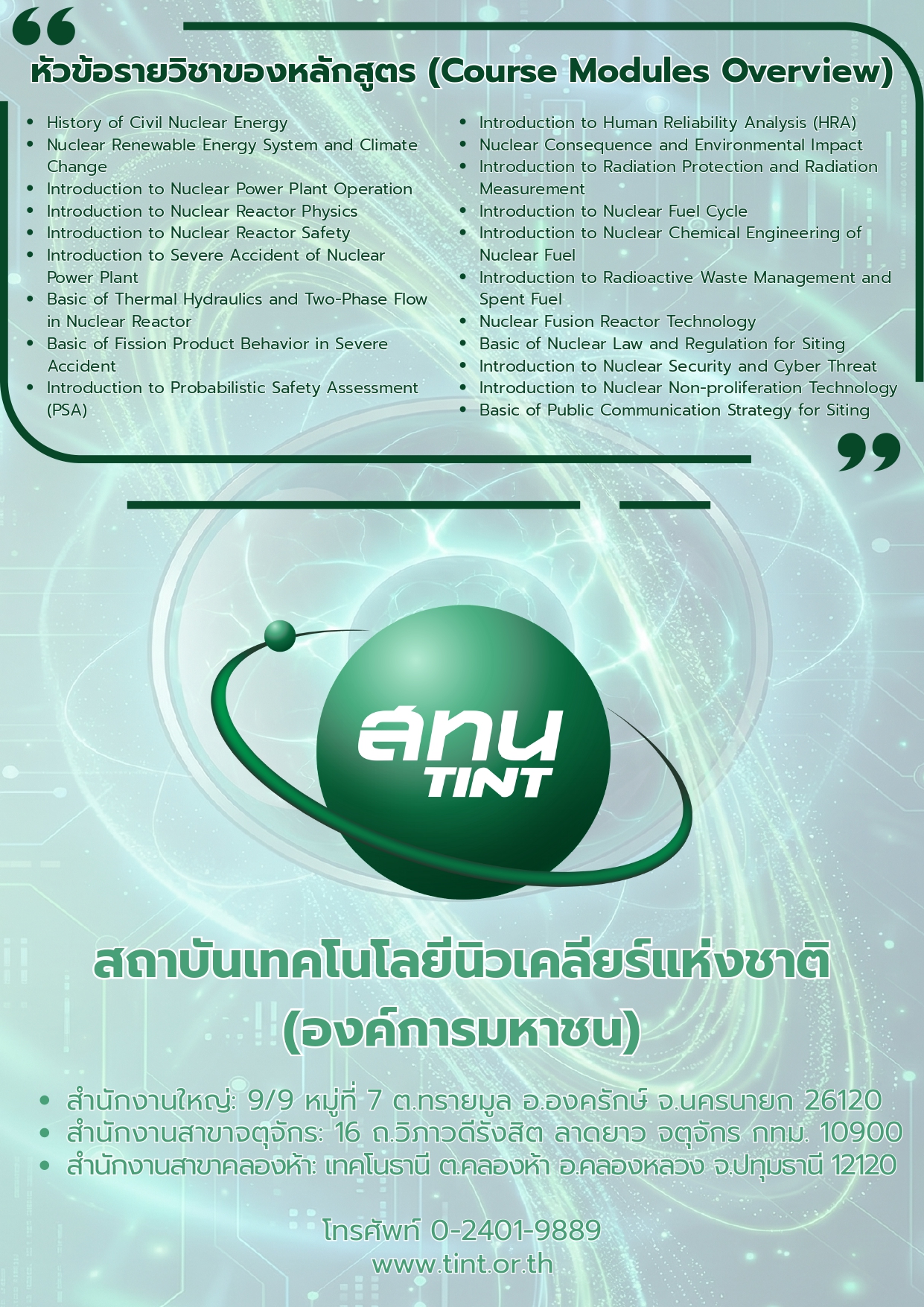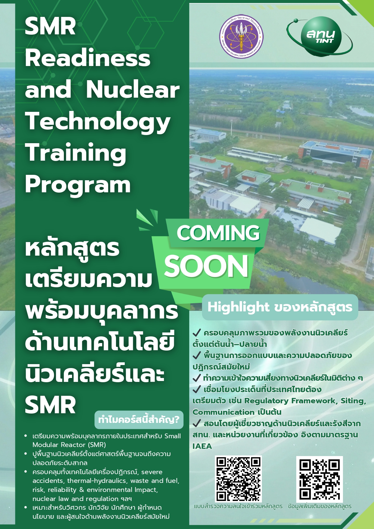 SMR Technology Readiness Course: หลักสูตรความพร้อมด้านเทคโนโลยีเครื่องปฏิกรณ์นิวเคลียร์ขนาดเล็กแบบโมดูลาร์ โดย สถาบันเทคโนโลยีนิวเคลียร์แห่งชาติ (สทน.)